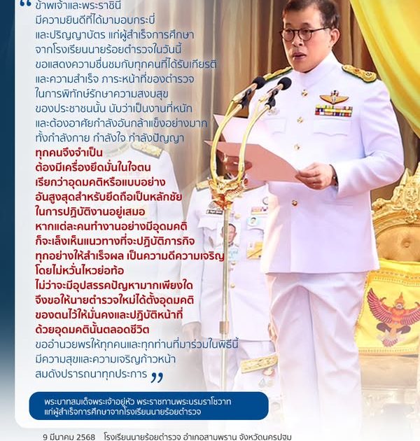 พระบาทสมเด็จพระเจ้าอยู่หัว พระราชทานพระบรมราโชวาทแก่ผู้สำเร็จการศึกษาจากโรงเรียนนายร้อยตำรวจ