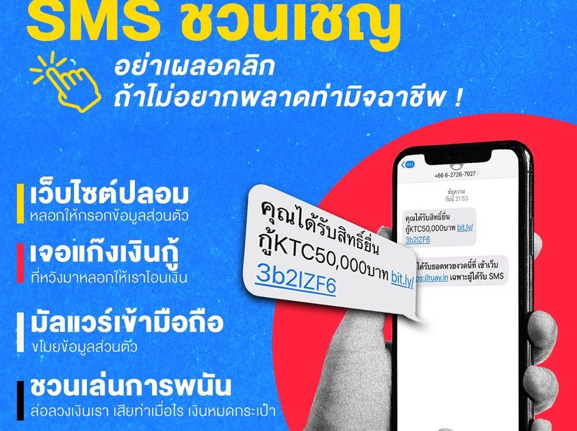 .เครือข่ายโทรศัพท์ เป็นอีกหนึ่งช่องทางที่มิจฉาชีพ มักใช้เพื่อหลอกลวงผู้เสียหาย ด้วยข้อความอัตโนมัติ ในเบื้องต้น เมื่อมี SMS เด้งเข้ามา ให้ฉุกคิดและไม่กดลิงก์เข้าไป สามารถช่วยลดโอกาสเสี่ยงที่จะโดนหลอกดูดเงิน หรือขโมยข้อมูลส่วนตัวได้ เพราะลิงก์นั้นอาจจะเป็นต้นเหตุที่จะทำให้ต้องเจอกับเรื่องดังนี้