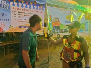 ร.ต.อ.ศรายุทธ บุญญพิพัฒกุล รอง สว.ธร.สภ.ท่าชี ปฏิบัติหน้าที่งานจราจร พร้อมด้วยกำลังรวม 14 นาย