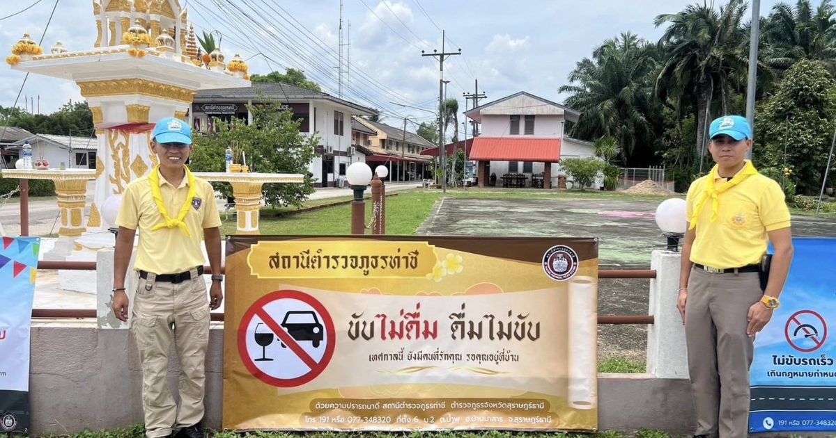 ติดตั้งป้ายแจ้งเตือนและป้ายประชาสัมพันธ์ต่างๆ เพื่อความปลอดภัยของประชาชนผู้ใช้รถใช้ถนนในการเดินทาง ช่วงก่อนเทศกาลสงกรานต์ ประจำปี พ.ศ.2568 10 เมษายน 2568 โดย thachee / ข่าวภารกิจผู้บังคับบัญชา #ตำรวจจิตอาสาติดป้ายประชาสัมพันธ์ #เทศกาลสงกรานต์2568 วันที่ 11-12 เมษายน 2568 จ.ส.ต.มนัสชัย วิชิตเชื้อ ผบ.หมู่ (สส.) สภ.ท่าชี และ ส.ต.ท.ศุภณัฐ บรรณาลังค์ ผบ.หมู่ (ผช.พงส.) สภ.ท่าชี ข้าราชการตำรวจจิตอาสาสถานีตำรวจภูธรท่าชี ร่วมกันติดตั้งป้ายแจ้งเตือนและป้ายประชาสัมพันธ์ต่างๆ เพื่อความปลอดภัยของประชาชนผู้ใช้รถใช้ถนนในการเดินทาง ช่วงก่อนเทศกาลสงกรานต์ ประจำปี พ.ศ.2568 FacebookFacebookXXLINELine