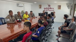 พร้อมด้วย พ.ต.ท.สมศักดิ์ รักบำรุง สวป.สภ.ท่าชี/หัวหน้าชุด ชมส. และเจ้าหน้าที่ สภ.ท่าชี ได้เชิญผู้ที่ขับขี่ยานพาหนะเล่นน้ำสงกรานต์ มาว่ากล่าวตักเตือนและอบรม เกี่ยวกับการเล่นน้ำสงกรานต์ หมวกกันน็อค 100% อย่างปลอดภัย และไม่นั่งท้ายกระบะ ป้องกันอุบัติเหตุ