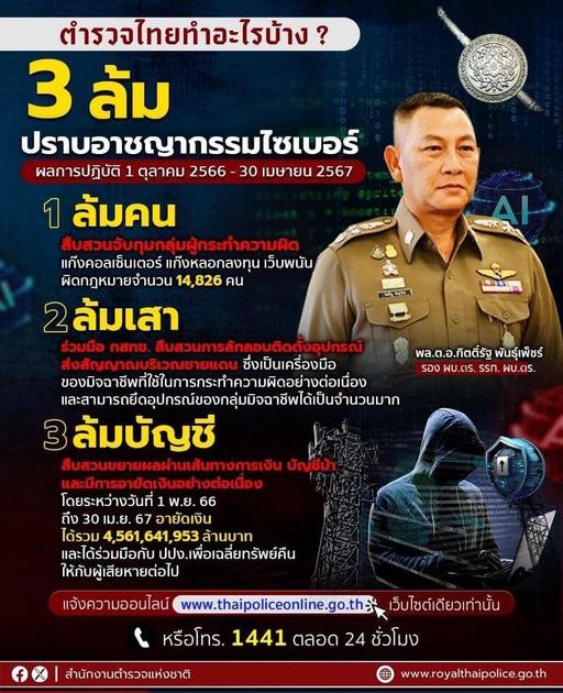 สำนักงานตำรวจแห่งชาติมุ่งมั่นคุ้มครองประชาชนจากภัยอาชญากรรมไซเบอร์ เดินหน้า “ล้มคน-ล้มเสา-ล้มบัญชี”