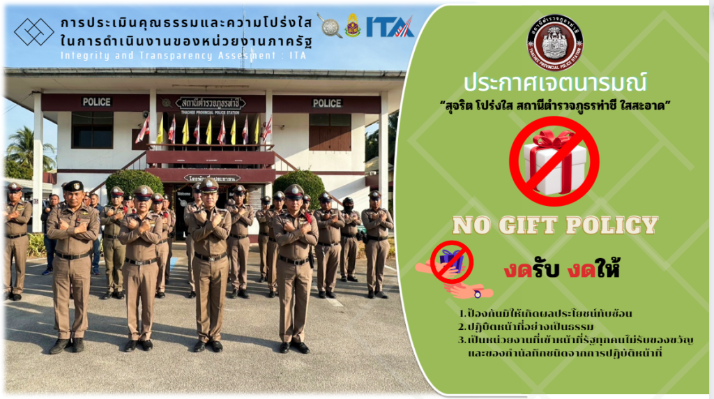ประกาศ สภ.ท่าชี นโยบายต่อต้านการรับสินบน (Anti-Bribery Policy) และการไม่รับของขวัญของกานัล หรือประโยชน์อื่นใด (No Gift Policy)