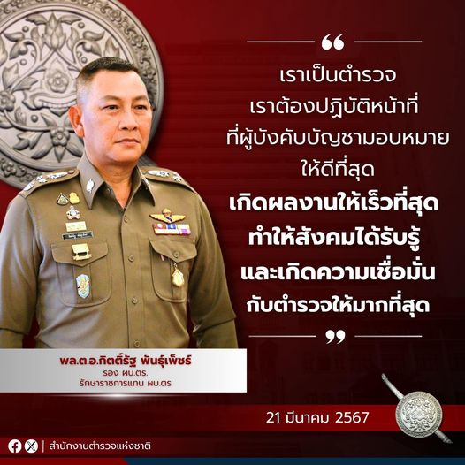 “.. เราเป็นตำรวจ เราต้องปฏิบัติหน้าที่ ที่ผู้บังคับบัญชามอบหมายให้ดีที่สุด เกิดผลงานให้เร็วที่
